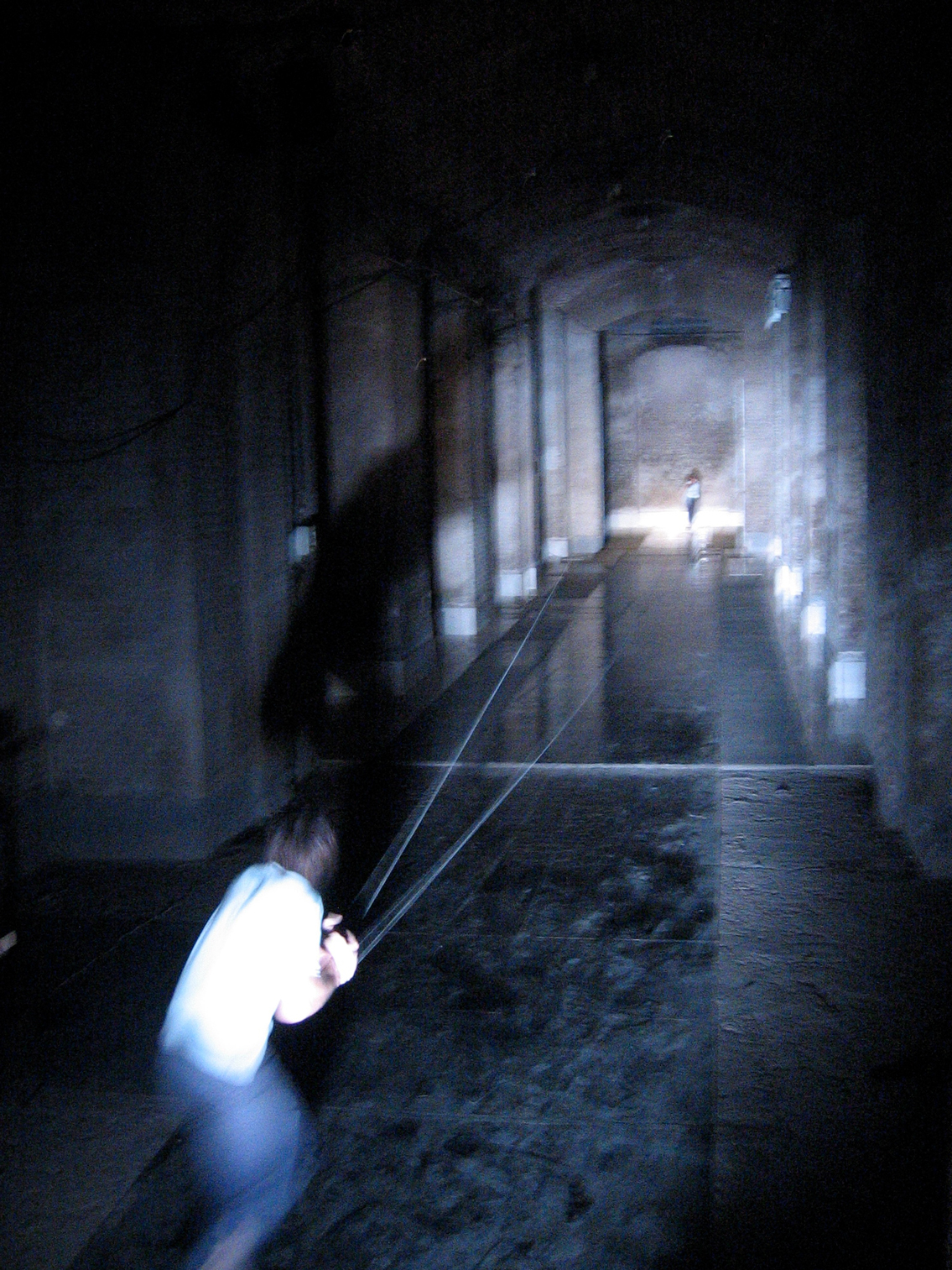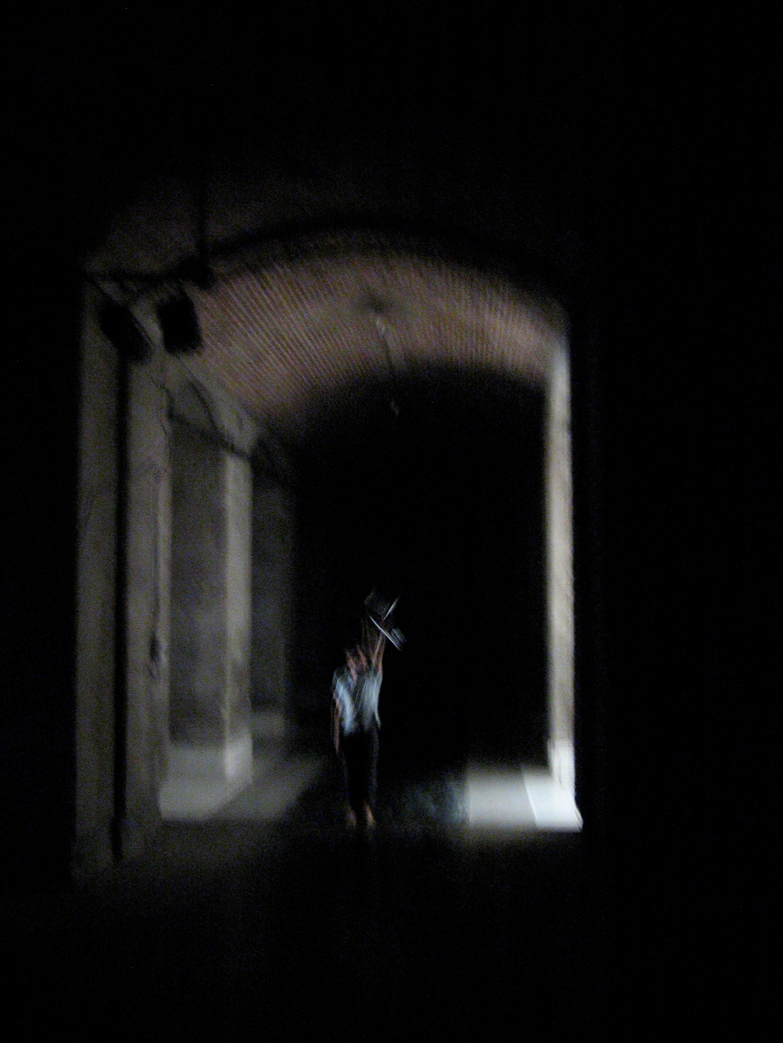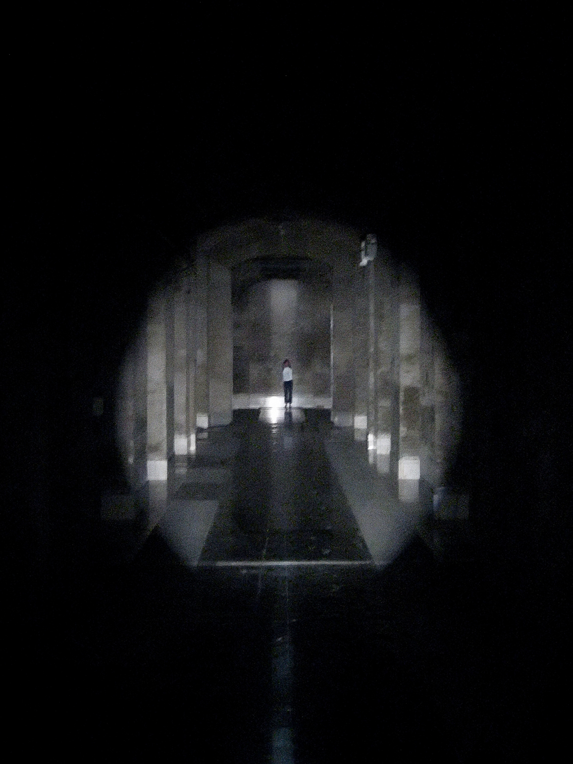 Un pasillo de 34 metros de largo como punto de partida. Los espectadores miran la escena desde uno de sus extremos. La escena y su profundidad se configuran como el espacio representado de la pintura, donde la perspectiva es eje y ley.