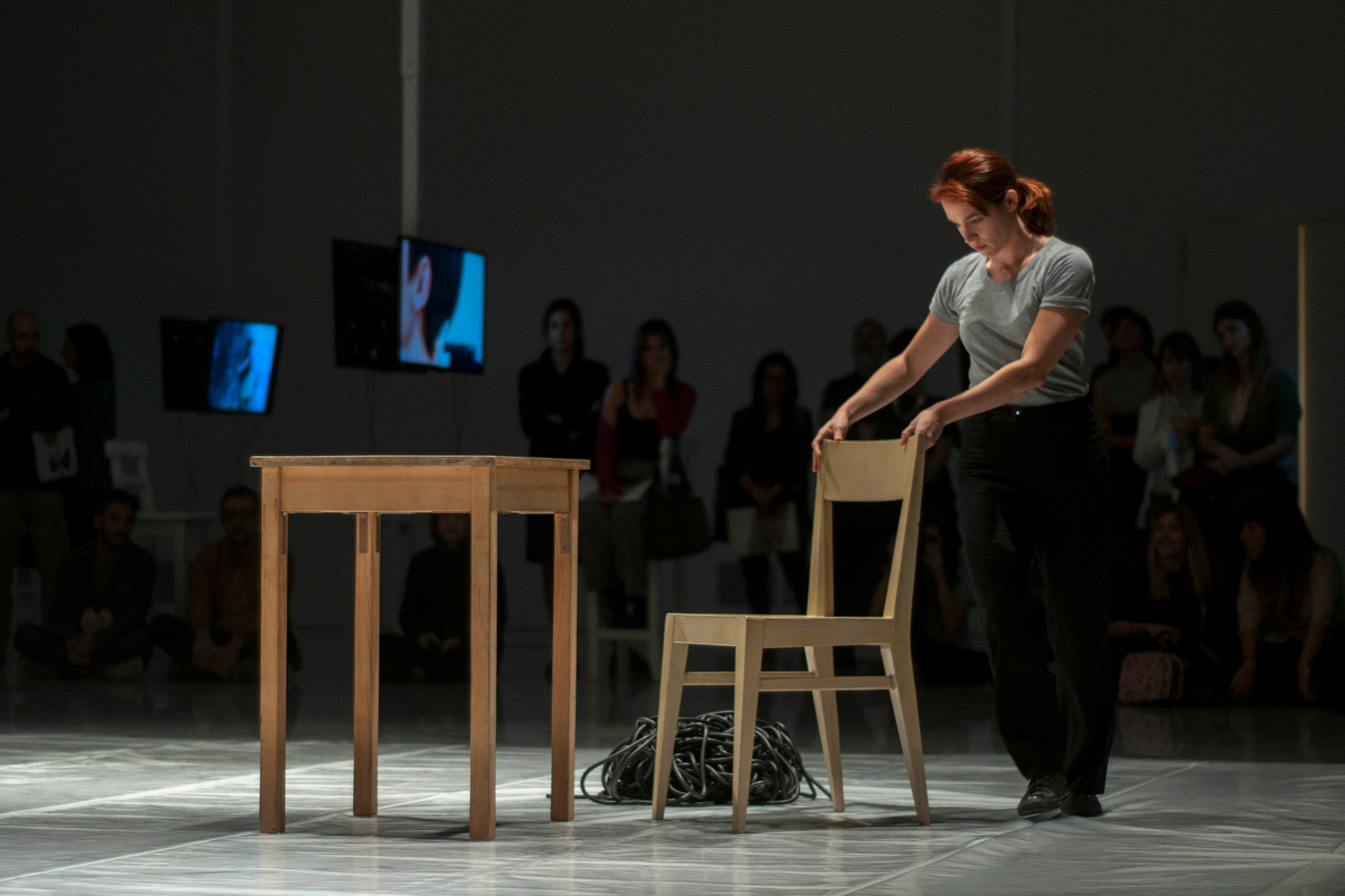 Performático-museístico: el publico podrá moverse alrededor de la escena y elegir desde donde mirar, y duracional ya que puede hacerse cada solo versionado para varios performers.