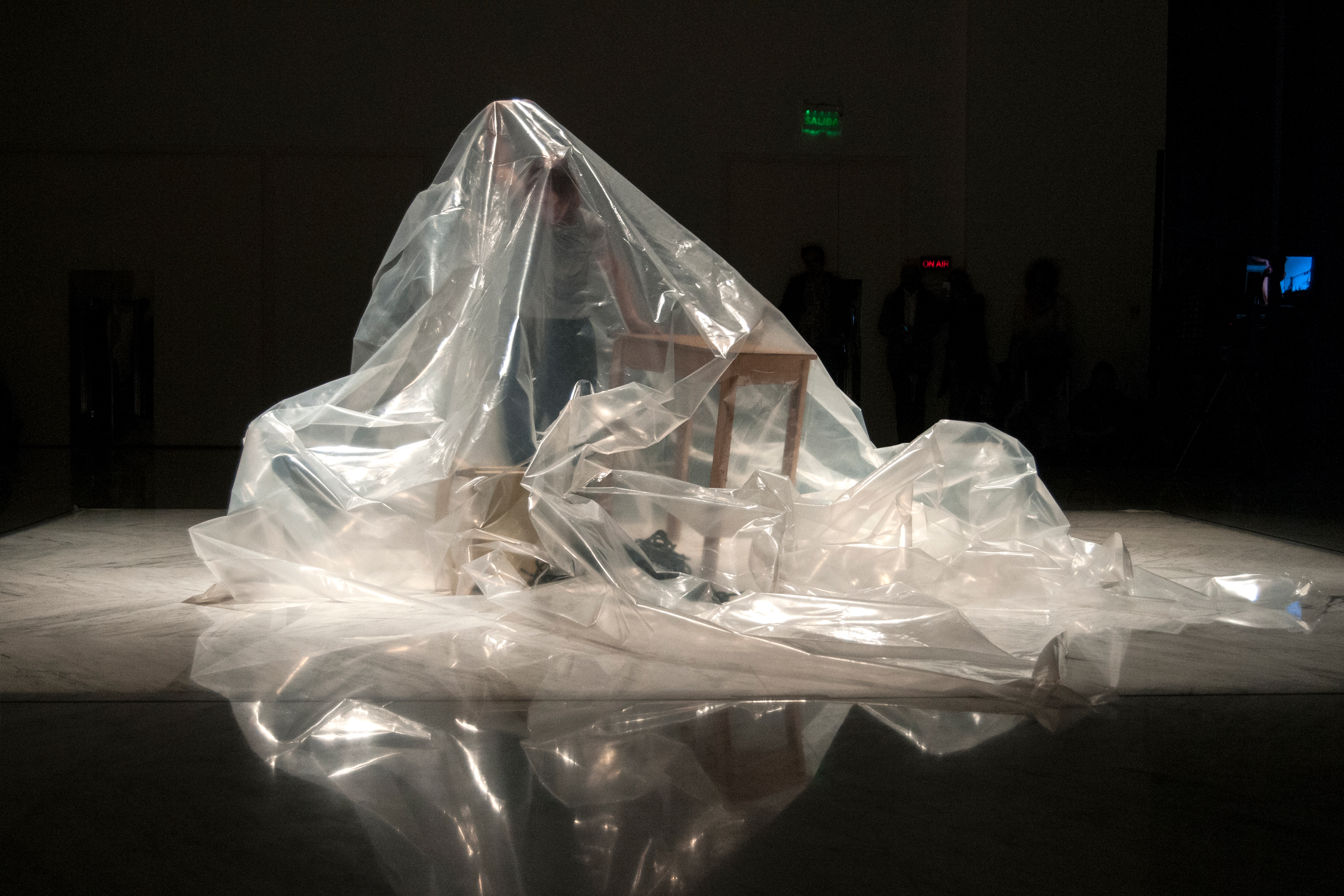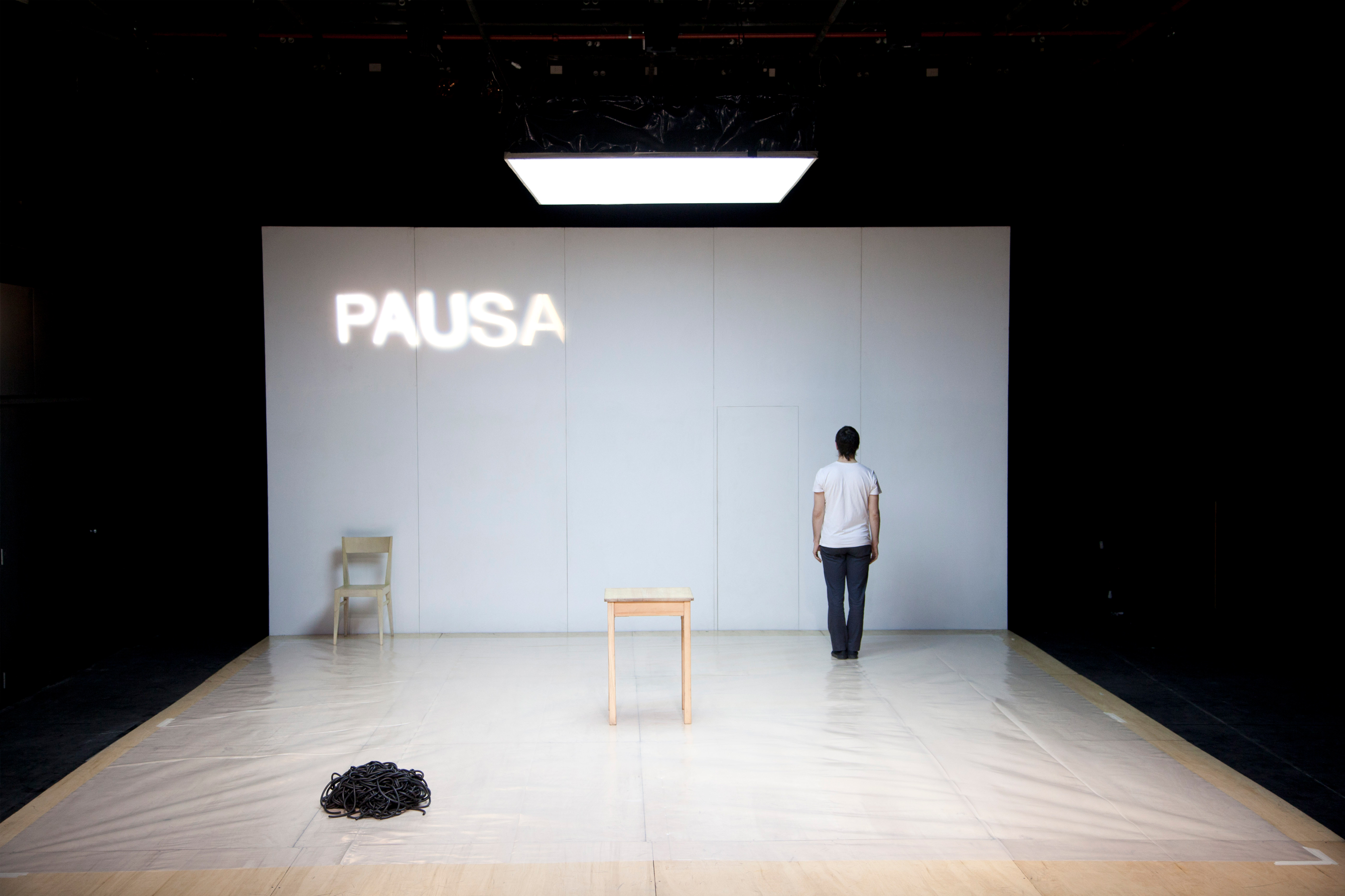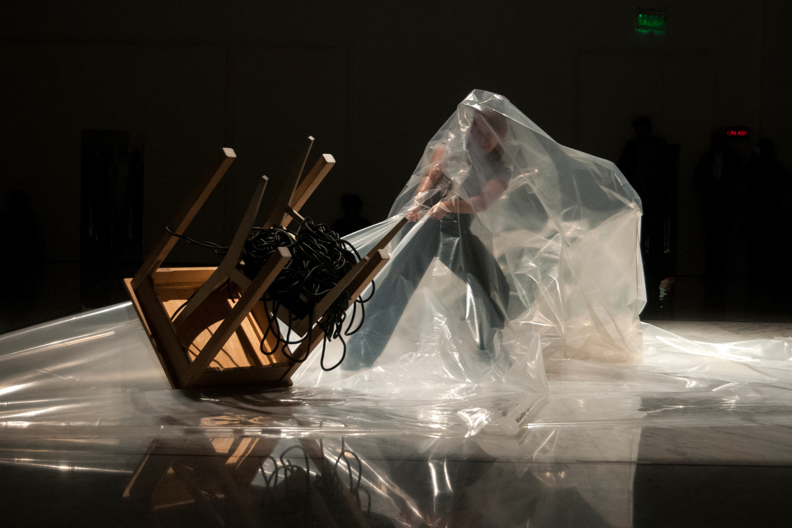 These relations force a new logic: the objects’ logic. A table, a chair, a wire and some plastic will also leave their condition behind in order to near the movement of the man/woman to finally access a new understanding sharing space and movement without any hierarchies. They all become one single object.