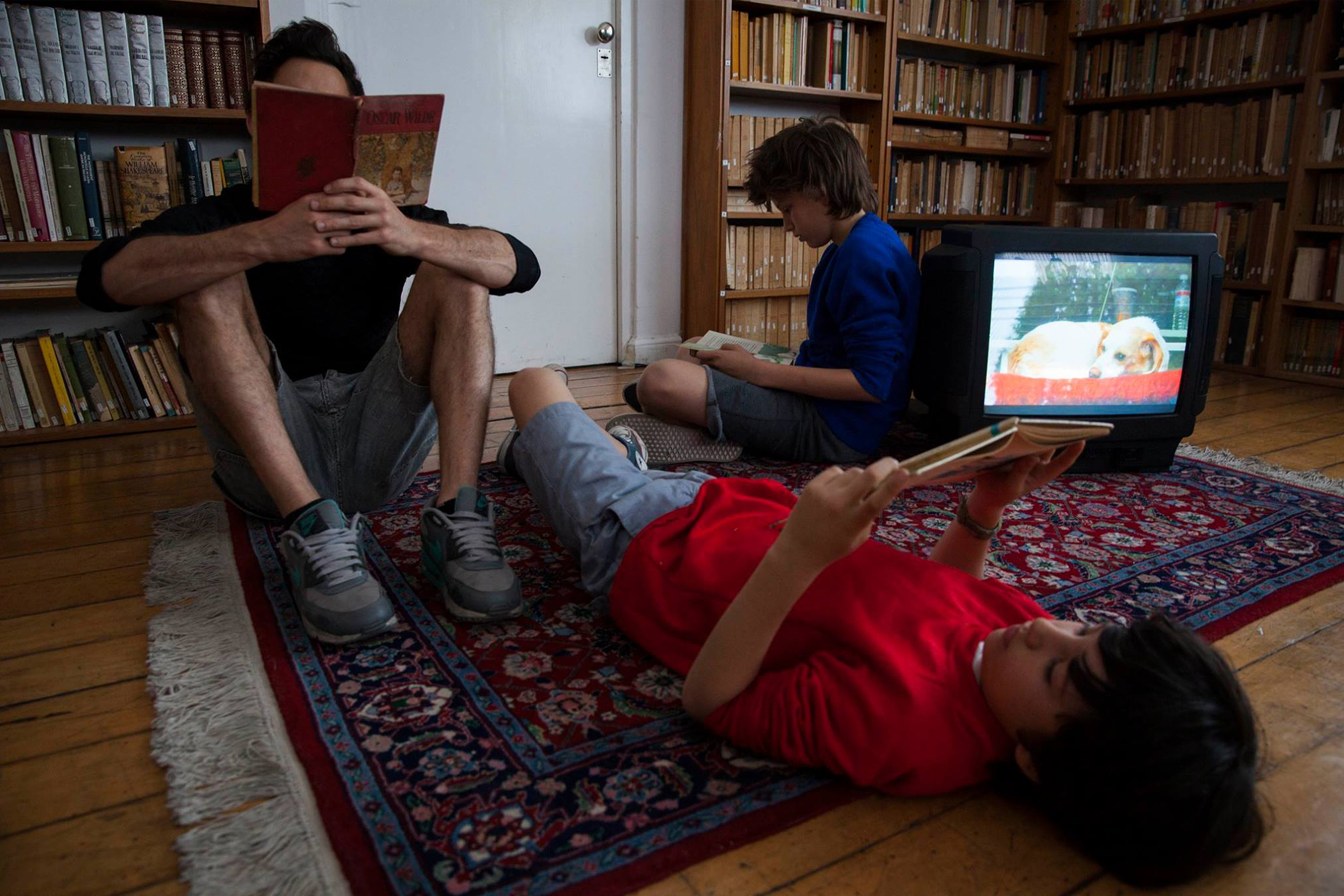 Two children and a boy guide the audience through the house creating images that evoke the act of reading, writing; an atmosphere of intimacy and silence.